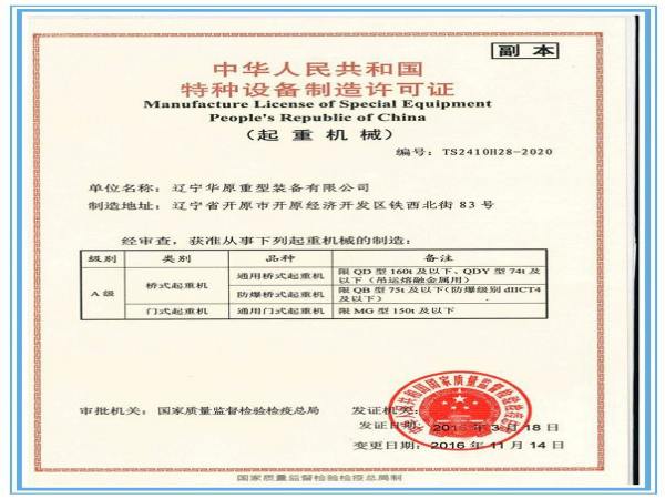 遼寧華原重型裝備有限公司成立于 2011 年 4 月,注冊(cè)資金 2.7 億元。作為遼寧省起重機(jī)械制造產(chǎn)業(yè)基地的龍頭企業(yè),是一家以橋式、門(mén)式起重機(jī)、散料 輸送設(shè)備、智能立體車庫(kù)等產(chǎn)品的設(shè)計(jì)、制造與銷售為主的大型裝備制造企業(yè)。